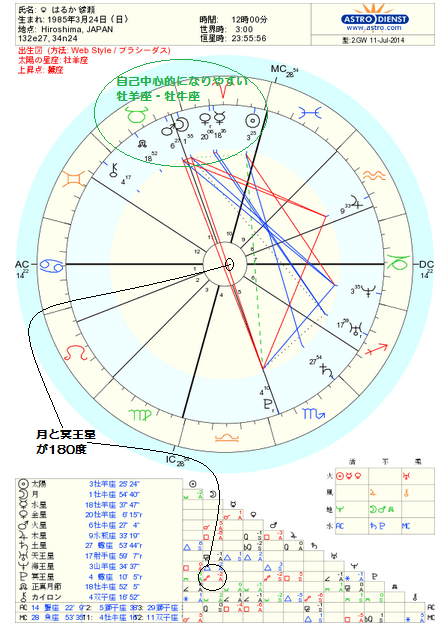 天王星とアセンダントのアスペクト・天王星とMCのアスペクト