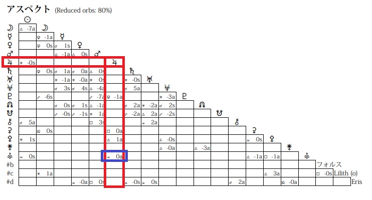 水星は冥王星・エリスとTスクエアの位置にあり、かなりのプレッシャーを受けます。プレッシャーを解放したのは、実は不倫や事故を起こした木星だったのかもしれない。